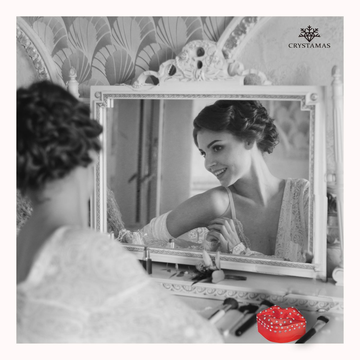 “Kiss Box”, Hand set crystals measuring four inches wide and comes in a keepsake box. Comes in Gold, Platinum, and Red color.