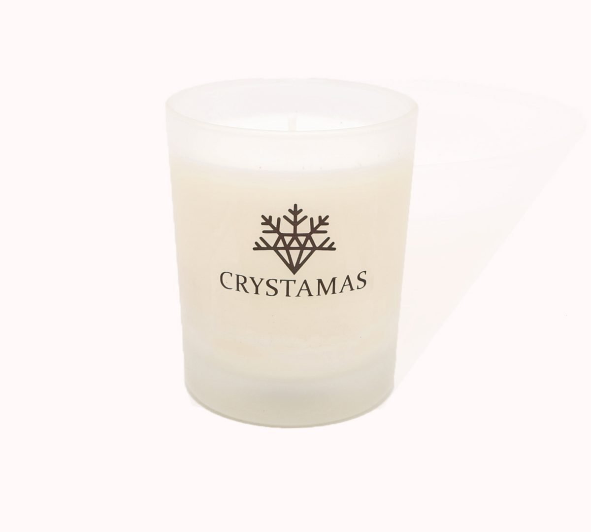 - Reusable glass and crystal candle holder featuring hand-set crystals